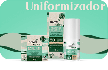 Os produtos Needs Natos foram pensados para o cuidado pessoal eficiente e responsável. Por isso, são livres de ingredientes agressivos e controversos para sua pele e para a natureza. Não utilizamos parabenos, cloridrato de alumínio, conservantes liberadores de formol ou óleo mineral. Nossos protetores solares são 100% minerais, seguros para a vida marinha e livres de ingredientes que podem causar o branqueamento dos corais. Além disso, o desenvolvimento de todos os produtos da linha considerou cuidadosamente a biodiversidade da natureza em cada etapa do processo. Aproveitando o melhor que ela tem a oferecer, todos os produtos contam com ingredientes provenientes de óleos vegetais extraídos de sementes, além de extratos de plantas e frutas.